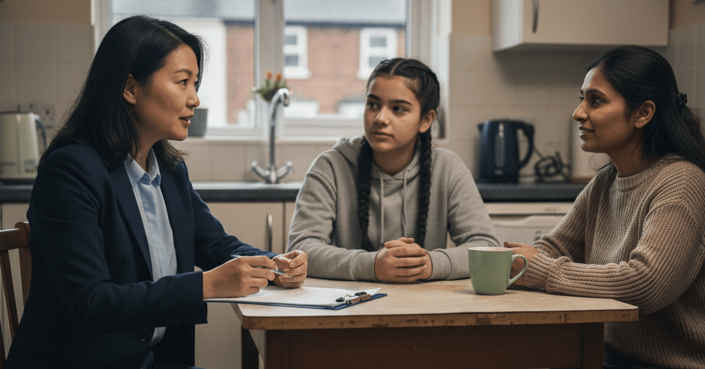 In a school setting, an Education Welfare Officer (EWO), employed by the local council, visits regularly to meet with the head teacher or senior staff and discuss pupils with irregular attendance, while inspecting registers for accurate completion and patterns that may indicate underlying issues. When a pupil is referred by the school, the EWO arranges family meetings—often at home—to address attendance concerns and explore solutions, ensuring every child receives full-time education either through improved school attendance or approved home education alternatives.